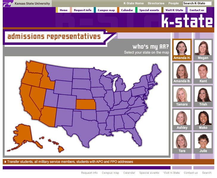 Description: Designed layout and built application in Flash for students to determine which Admissions rep is assigned to their school.